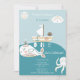 Diese Einladung wird sicher ein Sake! Diese Einladung ist sicherlich eine Art von Einladung, die mit modernen Walen und einem Boot mit Oktopus-Akzenten in abgedämpften Blautönen gestaltet wurde.
