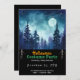 Blauer Wald Vollmond Schwarzes Halloween Einladung