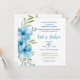 Ein skurriler blauer Aquarell-Blumenakzent und optisch ansprechende Schriftart sorgen für eine elegante Hochzeitseinladung, die das Sprichwort "Etwas Altes, Neues, Leihes und etwas Blaues" hervorruft. Dieses Design ist überwiegend formell, mit lässigeren Elementen, die in einem Gewebe verwoben sind, und verbindet nahtlos Vintage und moderne Ästhetik.
