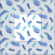 Die blauen Flecken werden in Aquarellfarben gezeichnet und mit Ölpastellfarben auf hellblauem Hintergrund platziert.