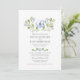 Blauer Blumenzauber Wasserfarbe Hochzeitseinladung mit handgemalten Wasserfarben Blume und kleinen Blätter.