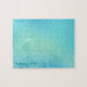 "Herausforderung, nicht wahr?" ist in dunkel aquamariner Farbe vor dem Hintergrund einer hellblauen Aquarellwäsche geschrieben.