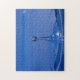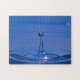 Blauer Wassertropfen in Bewegung auf einem Puzzle