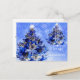 Blauer Weihnachtsbaum, Blume und Kiefern Feiertagspostkarte