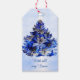 Blauer Weihnachtsbaum und Schneeflocken Geschenkanhänger