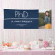 Ein Banner, der einen Doktoranden mit Worten und einem Bild feiert. Dieses minimalistische Design ist blau und weiß. Das Foto ist eine Vorlage, die für Sie ausgetauscht werden soll. Alle Wörter und beide Farben können individuell angepasst werden. <i>Fotografie © Storytree Studios, Stanford, CA</i>