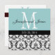 Blauer weißer Damask Monogramm Hochzeitseinladung Einladung