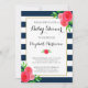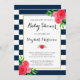 Blauer weißer Streifen Korallenblütendusche Einladung