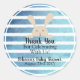 Blauer weißer Wasserfarben Streifen Kaninchendusch Runder Aufkleber