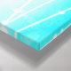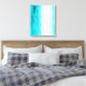 Ein großer blauer aquamariner Raum, ohne die Wände neu zu bemalten, wird durch den zeitgenössischen abstrakten Stil mit gemusterten Leinwänden in den modernen, blau-blauen Farbtönen ergänzt.