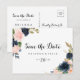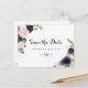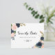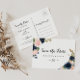 Diese blaue Winterblütenkarte ist Save the Date eine Postkarte für eine Goldhochzeit. Das Design ist in dunkelblau, blau, blau, navy, rosa, rot, goldgelb und grün, Blume gehalten und in eleganten Bouquets untergebracht.