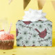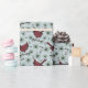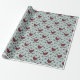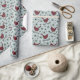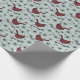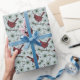 Dieses elegante Winterverpackungspapier zeigt ein Muster von handgezeichnet Roten Kardinal-Vögeln, die auf einem Kiefernzweig auf einem weichen, blauen Hintergrund stehen.