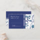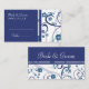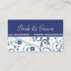 Tischplatzierkarten für Hochzeitsgäste in elegantem blau-weißem Blumenwirbelmuster, auch in passenden Karten, Einladungen, Magneten, Aufklebern und Briefmarke erhältlich.