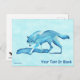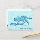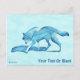 Ein stylisierter blauer Wolf (Canis lupus) wirft einen Schatten, wenn er durch schneebedecktes Gelände geht. Fügen Sie Ihren eigenen Text hinzu.