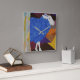 Dieses Gemälde ist eine interessante Kombination aus Minimalismus, figurativer Kunst und abstraktem Design. Die Baumrinde und das Muster und die Gestaltung der umgebenden Felder kontrastieren mit den klassischen Schafen, aber mit einer Drehung, wie er blau ist und mit geschmeidigen Wollmustern bedeckt ist. Es ist, als ob sie auf eine Reise gehen würde, aber gleichzeitig genießen sie ihre perfekte Position hinter einem Baum.