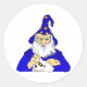 Blauer Zauberer mit Schädel Runder Aufkleber