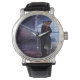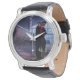Uhr, Klassische Damenuhr mit schwarzen Lederarmband