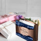 Ein Imitat aus Kupfer mit marineblau geschmücktem Hintergrund, Marmorstein. Personalisieren Sie Ihren Text und fügen Sie ihn hinzu. Der Name ist mit einem modernen handgeschriebenen Stilskript geschrieben.