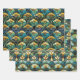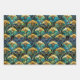 Blaues, aquamarines und goldenes Pfauenglas Geschenkpapier Set