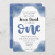 Blaues Aquarell-erste Geburtstags-Einladung Einladung