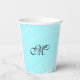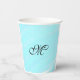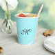 Blaues Aquarellfarben-Monogramm mit Buchstaben in Pappbecher