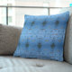 Blaues, ästhetisches Kissen mit einem asiatisch-orientalischen Oberflächenmuster mit einem visuellen Gedicht namens "Scar Collector", das ursprünglich in Band I aus der Buchreihe Diamond Dust Poems From the Black Sea Foto erschienen war. Rustikales Kissen mit einem blauen Küstendesign für sommerliche Seebad oder Ozean inspirierte Immobilien.