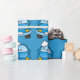 Lächelndes blaues Cartoon mit Seifenblasen.