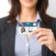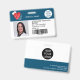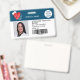 Ein modernes, berufliches Foto-ID-Abzeichen mit Logo und Strichcode-Horizontal-Layout mit rotem bearbeitbarem medizinischem Herz, Stethoskop.