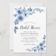 Feiern Sie die zukünftige Braut mit einem schönen blauen Blumendesign. Die Farbdetails sind einzigartig auf das Thema Hochzeit. Der Text und die Formulierung zusammen mit anderen Features dieses Designs können durch Klicken auf den Link Anpassen angepasst werden.