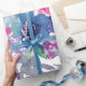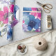 Blaues Blumenmuster, künstlerisches Aquarell Geschenkpapier
