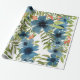 Blaues Blumenmuster, künstlerisches Aquarellbild Geschenkpapier