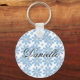 Blaues Blumenmuster - Personalisierter Schlüsselan Schlüsselanhänger