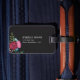 Schwarzer Gepäckumbau mit einem hübschen Blumenmuster in rosa, in Blauem und Burgunder. Fügen Sie Ihren Namen in einem reizenden Skript hinzu. Und auf der Rückseite, Ihr Name und Anschrift.