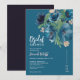 Ein boho staubblaues und dunkelmarineblaues boho blumenfarbenes Brautparty mit hübschen handgemalten Blume und Blüten mit grünem Blattwerk. Ein hübsches Party-Brautparty im Garten auf staubblauen.