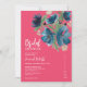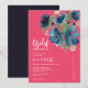 Ein boho staubblaues und dunkelmarineblaues boho blumenfarbenes Brautparty mit hübschen handgemalten Blume und Blüten mit grünem Blattwerk. Ein hübsches Party-Brautparty im Garten auf lebhaftem Rosa.