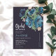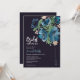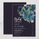 Ein boho staubblaues und dunkelmarineblaues boho blumenfarbenes Brautparty mit hübschen handgemalten Blume und Blüten mit grünem Blattwerk. Ein hübsches Garten Party Brautparty auf dunkelmarineblau.
