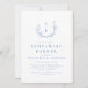 Das Probe Abendessen in Blau und Weiß lädt zu mit Monogramm Initialen ein, gerahmt durch elegantes Wappen und handgefertigte illustrierte botanische Blätter. Ihre Veranstaltungsdetails finden Sie unten in modernem Drehbuch und klassischem Schriftart. Einfach und luxuriös. Alle passenden Teile in der Sammlung anzeigen
