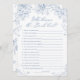 Mit dieser Personalisierten Blue Brautparty Who Knows Bride Game Card können Sie Ihre Brautparty-Ideen mit viel Spaß feiern. Diese Spielkarte wurde entwickelt, um einem etwas blauen Brautparty-Thema zu entsprechen, und verleiht den Ideen des blauen Brautparty einen besonderen Charme. Ob Sie ein klassisches blaues Brautparty oder ein stylisches blaues Brautparty planen, das ist eine tolle Ergänzung. Feiern Sie die zukünftige Braut mit etwas Blau, bevor ich Touch mache, und schaffen Sie das perfekte Blau, bevor ich dusche Thema.