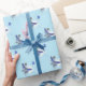Ein Digitalbcon-Bilddesign mit einem blau-weiß-farbigen Thema mit einer Vielzahl von individuellen Bildern, Formen, Mustern, Stilen und Schriftart in diesem einzigartigen Blue Butterfly Wrapping Paper. Dieses farbenprächtige und ansprechende Design ist der ideale Ort, um dieses besondere Geschenk mit Liebe und Sorgfalt zu teilen.