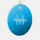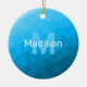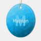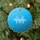Hellblaues cyan ombre geometrisches Mesh Muster Monogram Keramik Weihnachtsbaum Ornament. Monogram Personalize mit Ihrem benutzerdefinierten Initial und Namen. Dreieck geometrische Masche mit dunkelblauen Ober-Farbverlauf moderne Design.