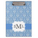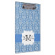 Blaues Damast-Monogramm-Gewohnheits-Klemmbrett Klemmbrett