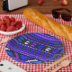 Geometrisches Muster im Stil eines nativen Amerikanischen Ureinwohners mit den typischen Farben Blau, lila und Schwarz.
