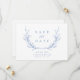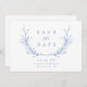 Blaues, einfaches botanisches Wappen-Monogramm Save The Date