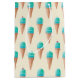 Handgezogene Eistöpfe, die in ein Muster auf einem cremefarbenen/hellgelben Hintergrund angeordnet sind. Das Eis ist ein hellblau ähnlich blauem Mond oder Bubblegum, und jede Kugel ist die perfekte Art von Rundschleife. Einige der Eistöpfe haben Kirschen auf der Oberfläche! Ein Sommer-Feinschmecker-Muster. Die Eiscreme-Kegel sind auf einem hellblauem Hintergrund angeordnet, aber Sie können die Farbe ändern, um zu sein, was immer Sie gewollt haben!