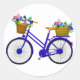Blaues Fahrrad mit Korb von Blume - Aufkleber