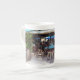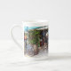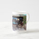 Lässig, entspannt, mit dem Fahrrad unterwegs, das sind einige der Dinge, die den komfortablen Lebensstil ausmachen, der im Originalfoto von ZoeSPEAK auf dieser Knochen-China-Tasse abgebildet ist. Ein Aquablau-Fahrrad lehnt sich an einen Pfosten vor einem Bar im Freien in Key West, Florida ab. In einer Badewanne, unter einer Markise, die der Farbe des Fahrrades entspricht, liegt ein grüner Laubbusch. Im dunklen Innern des Ortes stehen Holzstühle, an den Tischen stehen Aqua- und Kobalt-blaue Sonnenschirme. Ein Aqua-Blau-Bar vor der Tür vervollständigt das farbenfrohe Foto.