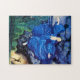 Blaues feenhaftes Puzzlespiel. Gemalte Illustration ab 1918. Eine von russischen Illustrator Kontstanin Somovs geliebtesten Arbeiten, blaue Fee oder blauer Vogel kennzeichnet eine verzauberte junge Frau, die Flug in den Nachthimmel mit einem blauen Kleid nimmt, das über ihre schöne blasse Haut wafting ist, während ein Bogenschütze versucht, ihr Herz mit einem Pfeil der Liebe zu gewinnen. Ein hübsches Geschenk für Fans der russischen Illustration, Konstantin Somov und Fairytale und Fantasie Art.