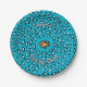 Blaues Fisch-Schulmuster mit kleinen orange Pappteller