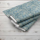 Blauer Blumenüberzug über ein kurzlebiges Muster Vintager Zeitungs- und Postkartendrucke in blau-cremefarbenem Untergrund. Viktorianische Luxusvibes waren inspirierend, dieses Design zu entwerfen.