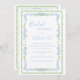 Schöne blaue Aquarell whimsical winzigen Blumenrahmen mit grünem Aquarellrahmen umgeben schöne Schriftart und Drehbücher in koordinierenden Farben Brautparty laden. Eine perfekte Hochzeitsbridal-Einladung für jede Jahreszeit.